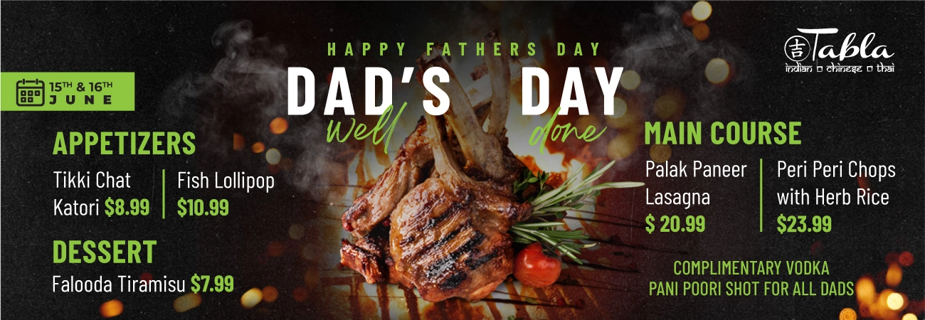 Make this Father’s Day a truly special occasion by celebrating at Tabla Indian Restaurant. With our exquisite menu, warm ambiance, and exceptional service, we promise a dining experience your dad will cherish. Join us at Tabla Indian Restaurant to honor and celebrate the amazing dads who mean the world to us.