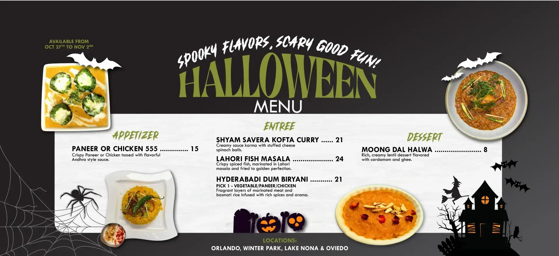 - Global yet familiar: Presenting Halloween Indian food concepts to the diners in ways they have never ventured.